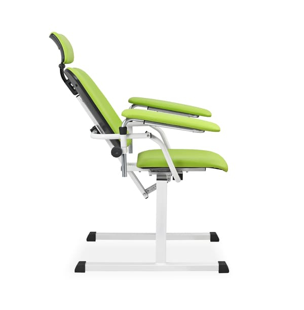 Fotel do pobierania krwi znajduje zastosowanie jako wyposażenie gabinetu lekarskiego, szpitala, laboratorium oraz prywatnych przychodni zdrowia. Fotel wyposażony jest w regulację kąta pochylenia oparcia i zagłówka. Oba podłokietniki posiadają regulację w dwóch płaszczyznach(na boki, oraz góra-dół). Produkt ten spełnia funkcję jako Fotel Laryngologiczny, dzięki zastosowaniu zagłówka i oparcia z określonym zakresem regulacji. Wymiary: Całkowita szerokość, mm800 Całkowita długość, mm780 Szerokość podstawy, mm655 Długość podstawy, mm730 Całkowita wysokość, mm1120 / 1280 Dopuszczalne obciążenie, kg120