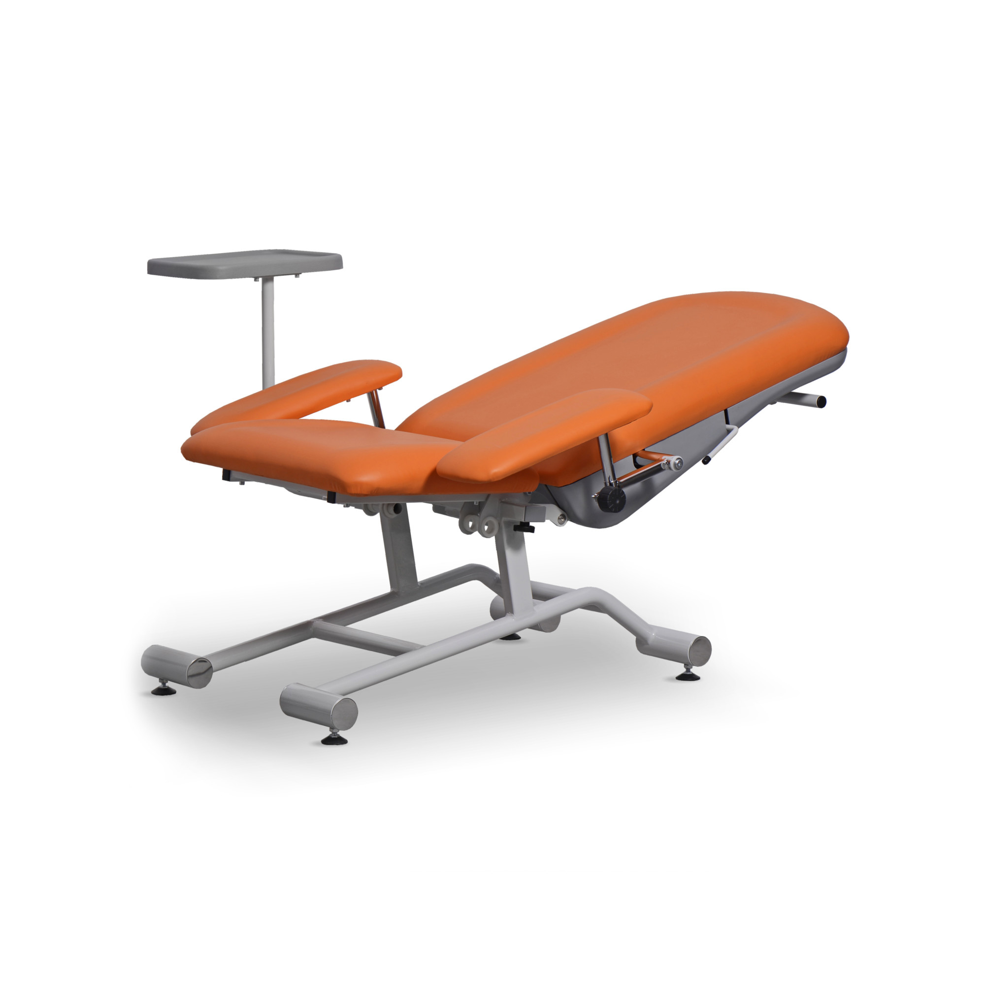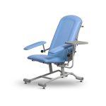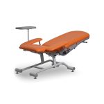 Multifunkcyjny fotel zabiegowy FoZa Basic Multifunkcyjny fotel zabiegowy FoZa Basic jest dedykowany jako fotel do pobierania krwi, szczepień oraz wykonywania zabiegów medycznych. Można na nim wykonywać zabiegi pobierania krwi, zabiegi laryngologiczne i okulistyczne, zabiegi dializy i chemioterapii. Może stanowić podstawowe wyposażenie szpitali, zakładów opiekuńczo-leczniczych oraz pomagać w opiece w domach prywatnych, punktów krwiodawstwa, punktów pobrań krwi oraz gabinetów zabiegowych. Przeznaczony jest do: przeprowadzania badań pacjentów, wykonywania czynności i zabiegów medycznych, pobierania krwi, wykonywanie innych badań lekarskich. Fotel wykonany jest z profili i rur stalowych, pokrytych lakierem proszkowym, odpornym na promieniowanie UV, uszkodzenia mechaniczne i środki dezynfekcyjno-myjące. Fotel medyczny za dodatkową opłatą może zostać doposażony w stolik/blat. Widoczny na zdjęciach stolik/blat nie wchodzi w skład oferty. Segmenty siedziska, oparcia pleców oraz podłokietniki są pokryte bezszwową tapicerką. Segment oparcia pleców posiada osłonę wykonaną z tworzywa ABS. Regulacja kąta pochylenia segmentu oparcia pleców realizowany jest za pomocą sprężyny gazowej poprzez zwolnienie odpowiedniej dźwigni. PARAMETRY TECHNICZNE FOTELA ZABIEGOWEGO FOZA BASIC Całkowita długość fotela: 1445mm Całkowita szerokość fotela: 880mm Szerokość siedziska: 550mm Wysokość siedziska: 500mm Kątowa regulacja segmentu oparcia pleców: 75° ± 2° Trendelenburg segmentu oparcia pleców: – 7° ± 2° Kątowa regulacja podłokietników, – 20° do 60° (± 2°) Zakres regulacji wysokości podłokietników: 150mm do 250 (± 2) Wymiary blatu bocznego: 248 x 348 (± 10 mm) Maksymalne dopuszczalne obciążenie: 150kg Maksymalne obciążenie blatu bocznego: 10kg Okres użytkowania 10 lat