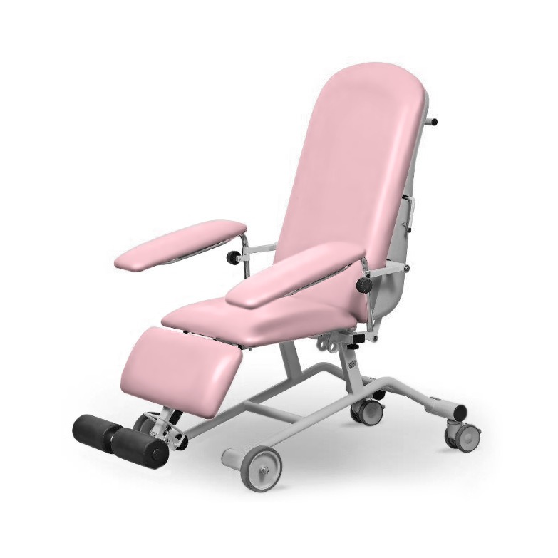 UBM FOZA BASIC MOBIL PUDROWY RÓŻ 23 Fotel zabiegowy z podnóżkiem, mobilny, z blatem