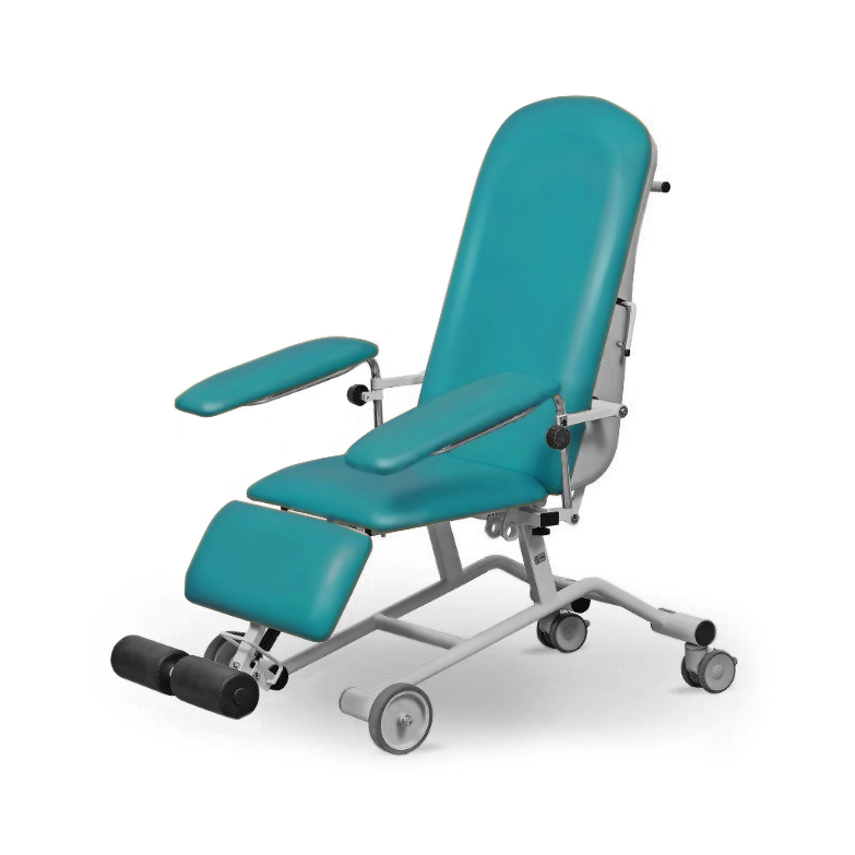Multifunkcyjny fotel zabiegowy przeznaczony jest do przewożenia oraz przeprowadzania badań pacjentów, wykonywania czynności i zabiegów: pobierania krwi, dializy, chemioterapii. Uniwersalny fotel medyczny Foza Basic Mobil może stanowić wyposażenie domów opieki społecznej, szpitali, zakładów opiekuńczo-leczniczych oraz pomagać w opiece w domach prywatnych. Można na nim przeprowadzać czynności takie jak: wszelkie badania lekarskie i podstawowe zabiegi medyczne,pobieranie krwi,zabieg dializy,zabieg chemioterapii,zabiegi laryngologiczne,zabiegi okulistyczne.Fotel wykonany jest z profili i rur stalowych, pokrytych lakierem proszkowym, odpornym na promieniowanie UV, uszkodzenia mechaniczne i środki dezynfekcyjno-myjące. Układ jezdny fotela wyposażony jest w podwozie z indywidualną blokadą kół tylnych. Segmenty siedziska, oparcia pleców oraz podudzia są tapicerowane. Segment oparcia pleców posiada osłonę wykonaną z tworzywa ABS. Regulacja kąta segmentów oparcia pleców i podudzia realizowana jest za pomocą sprężyn gazowych poprzez zwolnienie odpowiedniej dźwigni. Fotel medyczny posiada wyposażenie dodatkowe w postaci niewielkiego stolika/blatu. Fotel zabiegowy FoZa Basic Mobil jest dedykowany opiece paliatywnej. Model FoZa Basic MobilCałkowita długość fotela, mm 1870 ± 20 mmCałkowita szerokość fotela, mm 880 mm ± 20 mmSzerokość siedziska, mm 550 mm ± 20 mmWysokość siedziska, mm 500 mm ± 20 mmKątowa regulacja segmentu oparcia pleców, ° 75° ± 2°Trendelenburg segmentu oparcia pleców, ° – 7° ± 2°Kątowa regulacja segmentu podudzia, ° 7° do – 70° (± 2°)Kątowa regulacja podłokietników, ° – 20° do 60° (± 2°)Zakres regulacji wysokości podłokietników, mm 150 do 250 (± 2)Wymiary blatu bocznego, mm 248 x 348 (± 10 mm)Maksymalne dopuszczalne obciążenie, kg 150Średnica kół jezdnych przednich, mm Ø150Średnica kół jezdnych tylnych, mm Ø100Maksymalne obciążenie blatu bocznego, kg 10Okres użytkowania 10 lat