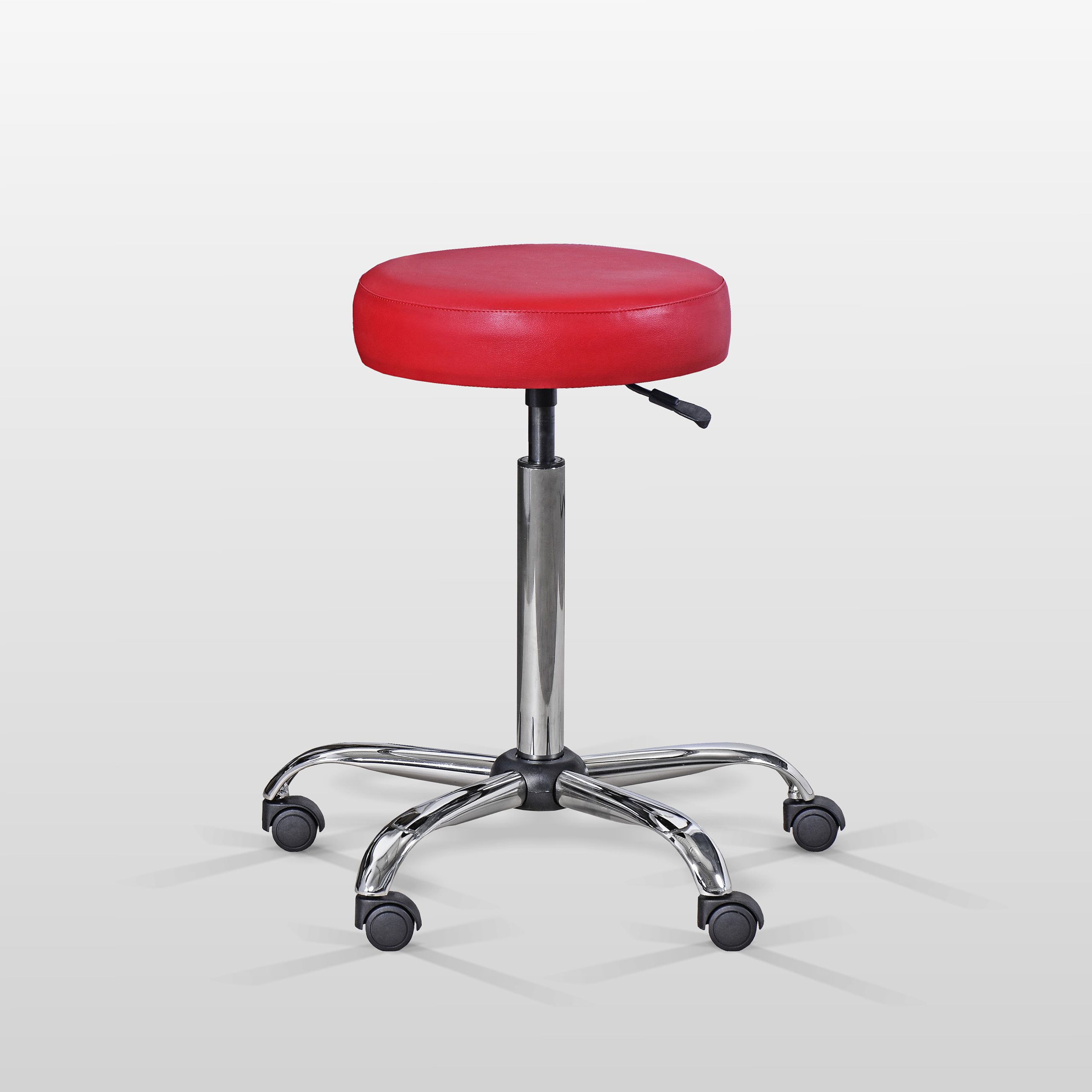 Taboret lekarski LEKO Stabilna podstawa taboretu została wykonana z metalu, średnica 60 cm. Zakres regulacji wysokości taboretu, wynoszący od 59 do 78 cm, pozwala na dostosowanie do odpowiedniej wielkości. Możliwy jest także wybór kółek jezdnych lub stopek przy podstawie. Taboret posiada miękkie, okrągłe siedzisko. WYMIARY: Model LEKOMin. wysokość: 590mmMax. wysokość: 780mmŚrednica siedziska: 390mmGrubość siedziska: 100mmŚrednica podstawy: 600mm