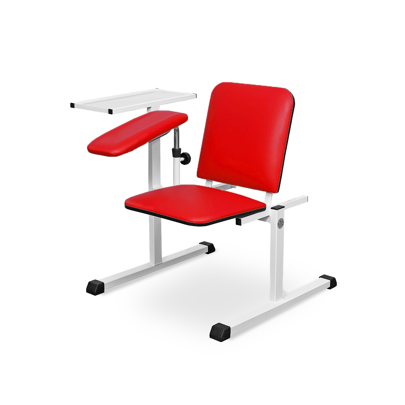 Stanowisko do pobierania krwi to wyrób, który poprzez wykorzystanie ruchomego oparcia pleców przeznaczony jest do ułatwienia przeprowadzenia zabiegu iniekcji na prawym lub lewym przedramieniu osoby poddawanej zabiegowi. W zależności od wyboru, fotel może być wyposażony w dwa podłokietniki lub tylko podłokietnik lewy wraz z dodatkową półką. System ręcznej regulacji podłokietników oraz oparcia każdego modelu został w pełni zintegrowany, co pozwala na dopasowanie do wysokości przedramienia pacjenta oraz przybrania pozycji siedzącej. Podłokietniki można ustawić nawet w zakresie 180° oraz podnieść lub obniżyć. Obicie zostało wykonane ze wzmocnionego materiału, który można czyścić. Do wyboru dostępnych jest kilkanaście wariantów kolorystycznych.