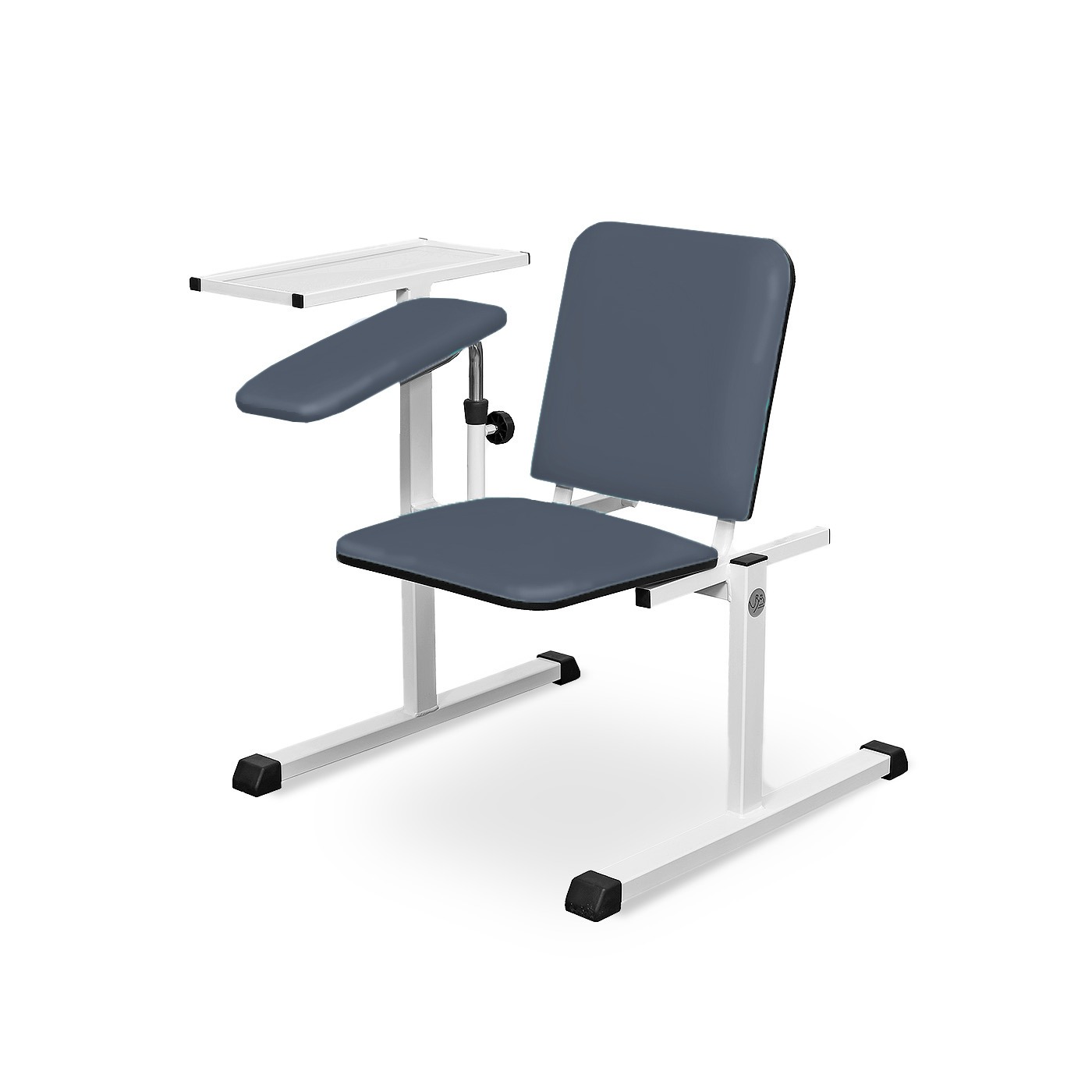 Stanowisko do pobierania krwi to wyrób, który poprzez wykorzystanie ruchomego oparcia pleców przeznaczony jest do ułatwienia przeprowadzenia zabiegu iniekcji na prawym lub lewym przedramieniu osoby poddawanej zabiegowi. W zależności od wyboru, fotel może być wyposażony w dwa podłokietniki lub tylko podłokietnik lewy wraz z dodatkową półką. System ręcznej regulacji podłokietników oraz oparcia każdego modelu został w pełni zintegrowany, co pozwala na dopasowanie do wysokości przedramienia pacjenta oraz przybrania pozycji siedzącej. Podłokietniki można ustawić nawet w zakresie 180° oraz podnieść lub obniżyć. Obicie zostało wykonane ze wzmocnionego materiału, który można czyścić. Do wyboru dostępnych jest kilkanaście wariantów kolorystycznych.