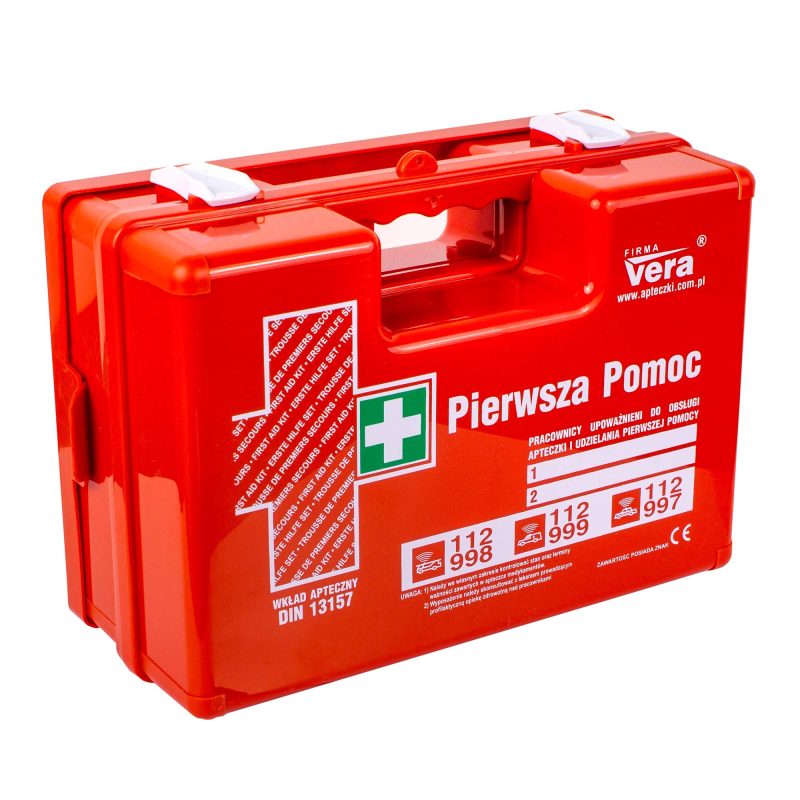 Apteczka pierwszej pomocy CLASSIC MINI w saszetce zawiera podstawowe wyposażenie służące do udzielania pierwszej pomocy. Właściwości: Saszetka z wodoodpornej tkaniny. Wyroby medyczne oznakowane znakiem CE. Apteczka spełnia wymagania norm Unii Europejskiej. Termin ważności produktów sterylnych wynosi 5 lat. Skład apteczki: Przylepiec DIN 13019-A, 5m x 25,cm Zestaw plastrów do składu DIN 13164 i DIN 1367 Opaska podtrzymujaca elastyczna 6 cm 2 szt. Opaska podtrzymująca elastyczna 8 cm Chusta trójkątna DIN 13168-D, 96cm x 96 cm x136cm, fizelinowa, biała 2 rękawice winylowe (1 para) Koc ratunkow 160 cm x 210 cm x, srebrny/złoty