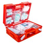 Apteczka w pudełku z tworzywa ABS ze stelażem mocującym do ściany. Kolory apteczki: pomarańczowo-fluorescencyjnyRozmiar opakowania: 280 x 200 x 115 mm Waga: 1,7 kgWyrób spełnia wymagania norm Unii Europejskiej Skład zgodny z normą DIN 13157 PLUS: 1 szt. Kompres zimny2 szt. Kompres na oko3 szt. Kompres 10 x 10cm (pak po 2 szt.)2 szt. Opaska elastyczna 4m x 6cm2 szt. Opaska elastyczna 4m x 8cm1 kpl. Plaster 10 x 6 cm (8szt.)1 kpl. Zestaw plastrów (20szt.)1 szt. Przylepiec 5m x 2,5 cm1 szt. Opatrunek indywidualny G3 szt. Opatrunek indywidualny M1 szt. Opatrunek indywidualny K1 szt. Chusta opatrunkowa 60 x 80cm2 szt. Chusta trójkątna1 kpl. Chusta z flizeliny (5 szt.)1 szt. Koc ratunkowy 160 x 210 cm1 szt. Nożyczki 19 cm4 szt. Rękawice winylowe2 szt. Worek foliowy 30×40 cm6 szt. Chusteczka dezynfekująca1 szt. Instrukcja udzielania pierwszej pomocy wraz z wykazem telefonów alarmowych