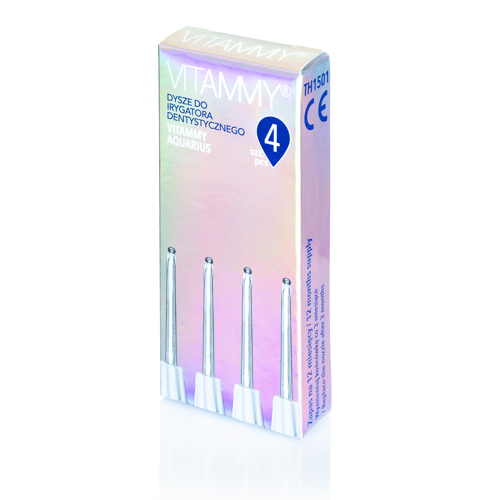 Zapasowe końcówki do irygatora Vitammy AQUARIUS – 4 sztuki w opakowaniu. Producent radzi zmieniać końcówkę irygatora co 6 miesięcy. Opakowanie wystarczy na 2 lata.