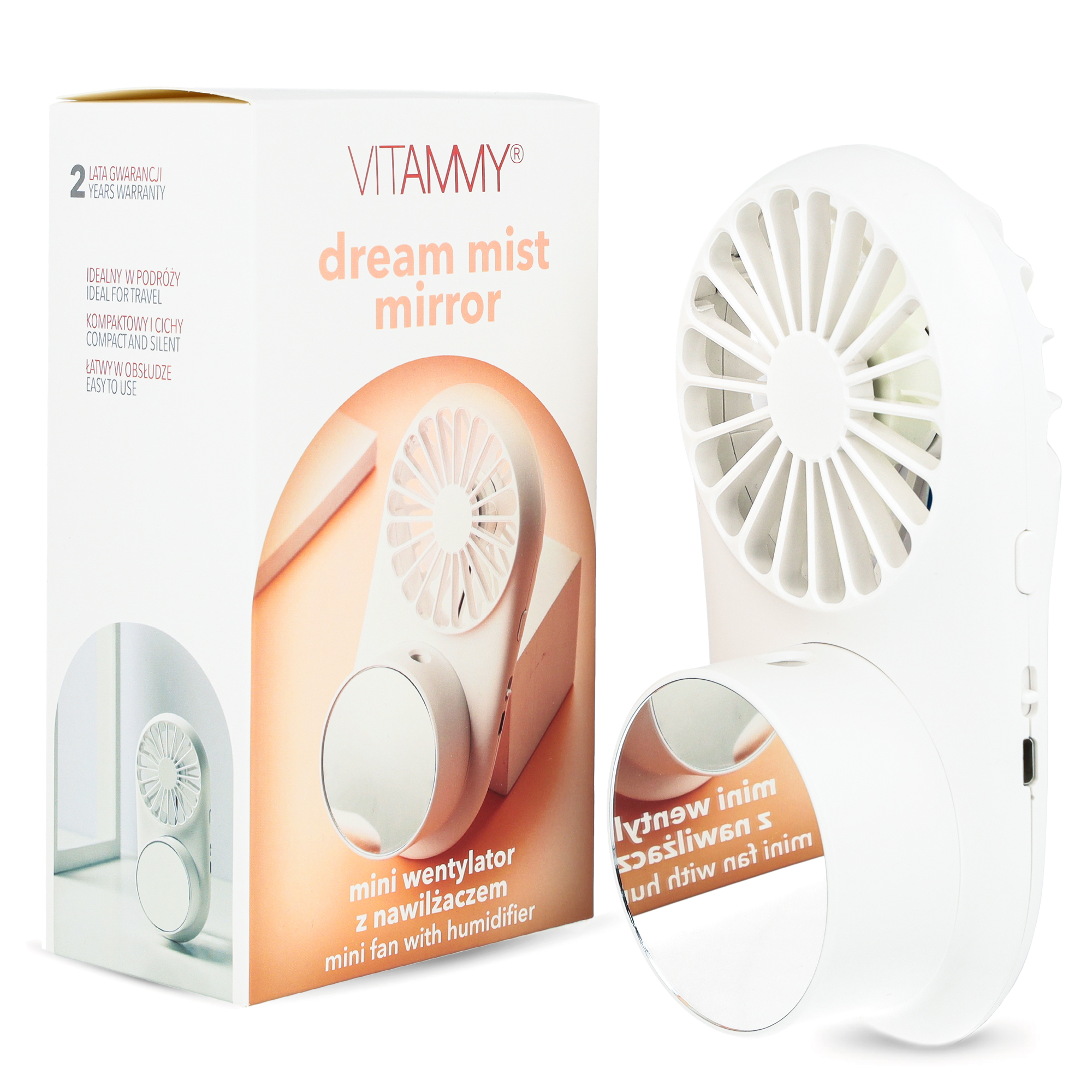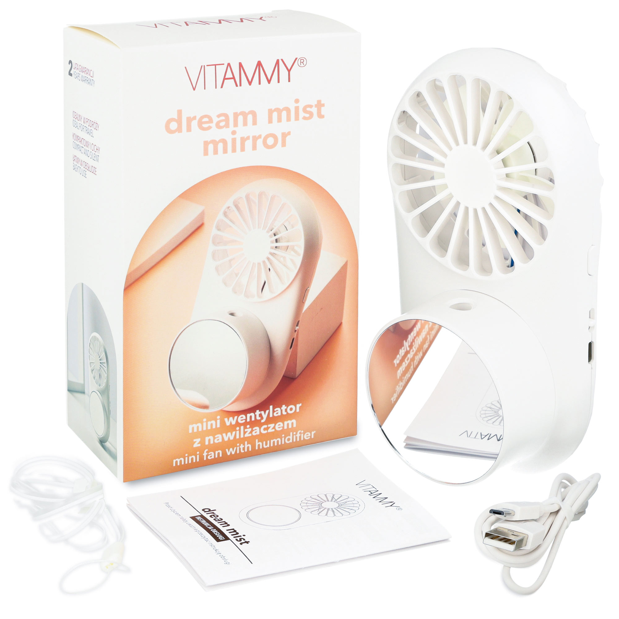 VITAMMY DREAM MIST MIRROR Mini wentylator z nawilżaczem i lusterkiem, USB