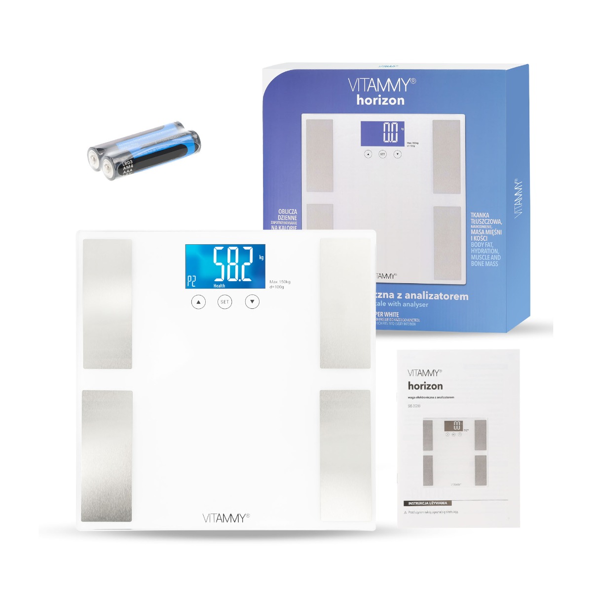 VITAMMY HORIZON Waga analityczna łazienkowa, pomiar tłuszczu, wody, BMI
