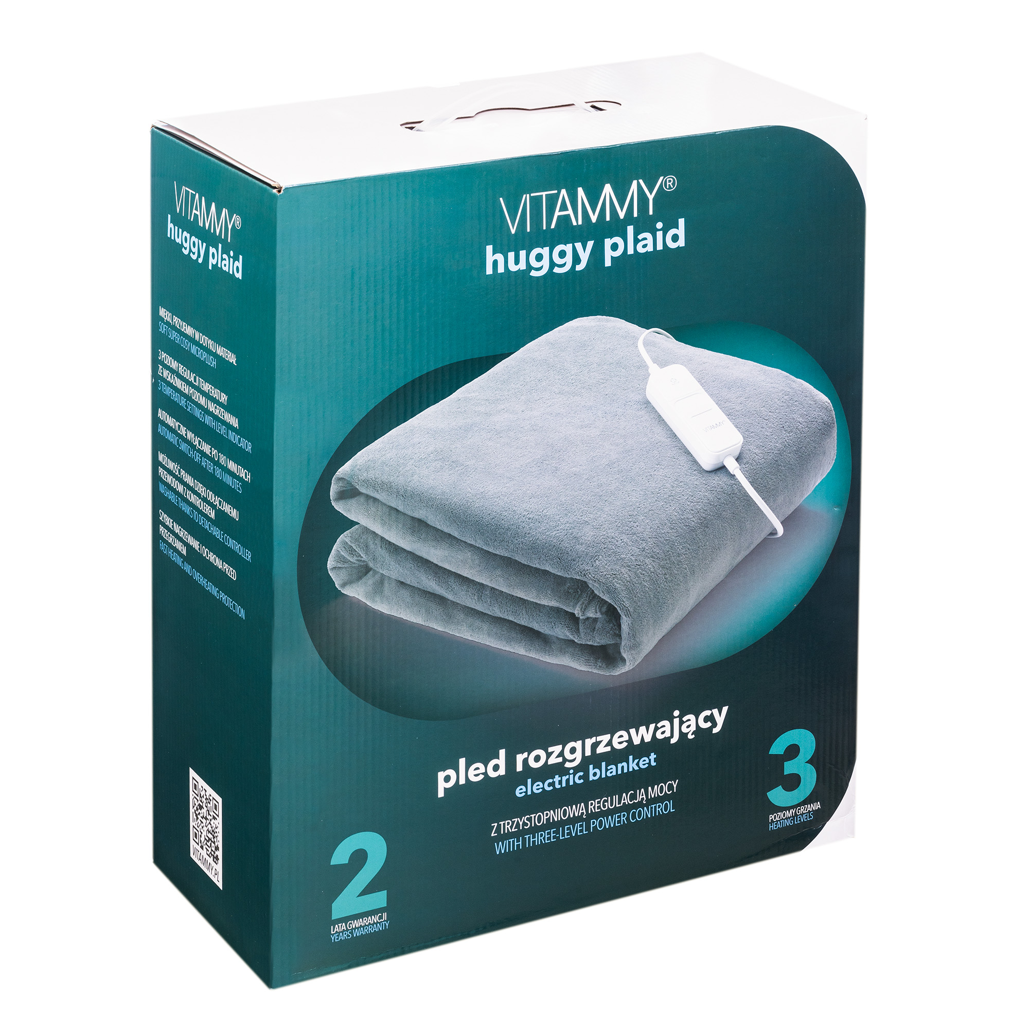 VITAMMY HUGGY PLAID mięciutki i przyjemny w dotyku koc elektryczny Pled elektryczny to wspaniałe rozwiązanie na chłodne wieczory nie tylko dla tych, którzy szukają sposobu na szybkie rozgrzanie się po powrocie z pracy. VITAMMY Huggy ma ochronę przed przegrzaniem i automatyczne wyłącza się po 180 minutach pracy. Rozmiar: 180x130cm. Moc 120 W. Pomoc przy ogrzaniu po długim spacerze Często po koce elektryczne sięga się podczas jesieni i zimy. Ponadto pled rogrzewający VITAMMY Huggy, dzięki wytwarzanej przez siebie temperaturze, uprzyjemni zimne wieczory. Chętnie sięgną po niego również sportowcy. Terapia ciepłem przynosi ulgę i koi. Używanie poduszki elektrycznej należy do najprostszych czynności, które można wykonać samodzielnie w domu. Kiedy można stosować elektryczne poduszki ogrzewające? Poduszka elektryczna znajduje szerokie zastosowanie. Jest pomocna w wielu przypadkach. Łatwy w obsłudze panel z trzema ustawieniami temperatury Pled wykonany z mięciutkiej i przyjemnej w dotyku tkaniny, posiada trzystopniową regulację temperatury ze wskaźnikiem poziomu nagrzewania. Po odłączeniu przewodu z kontrolerem istnieje możliwość prania. Napięcie prądu: 220~240 V. Moc: 120 W. Automatyczne wyłączenie po: ~120 minut. Rozmiar: 180 x x130 cm.