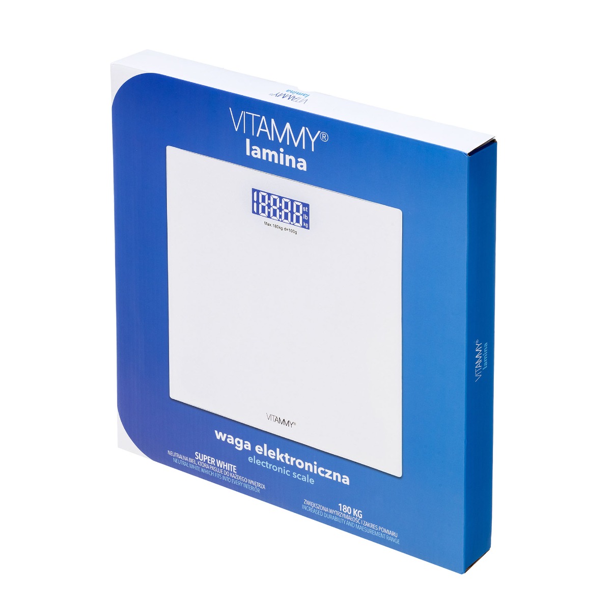 VITAMMY LAMINA Elektroniczna waga łazienkowa, precyzyjna i biała