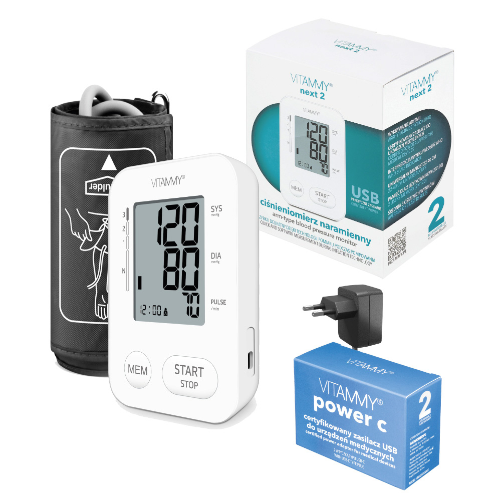 VITAMMY NEXT 2 + POWER C Zestaw – ciśnieniomierz naramienny z szybkim pomiarem