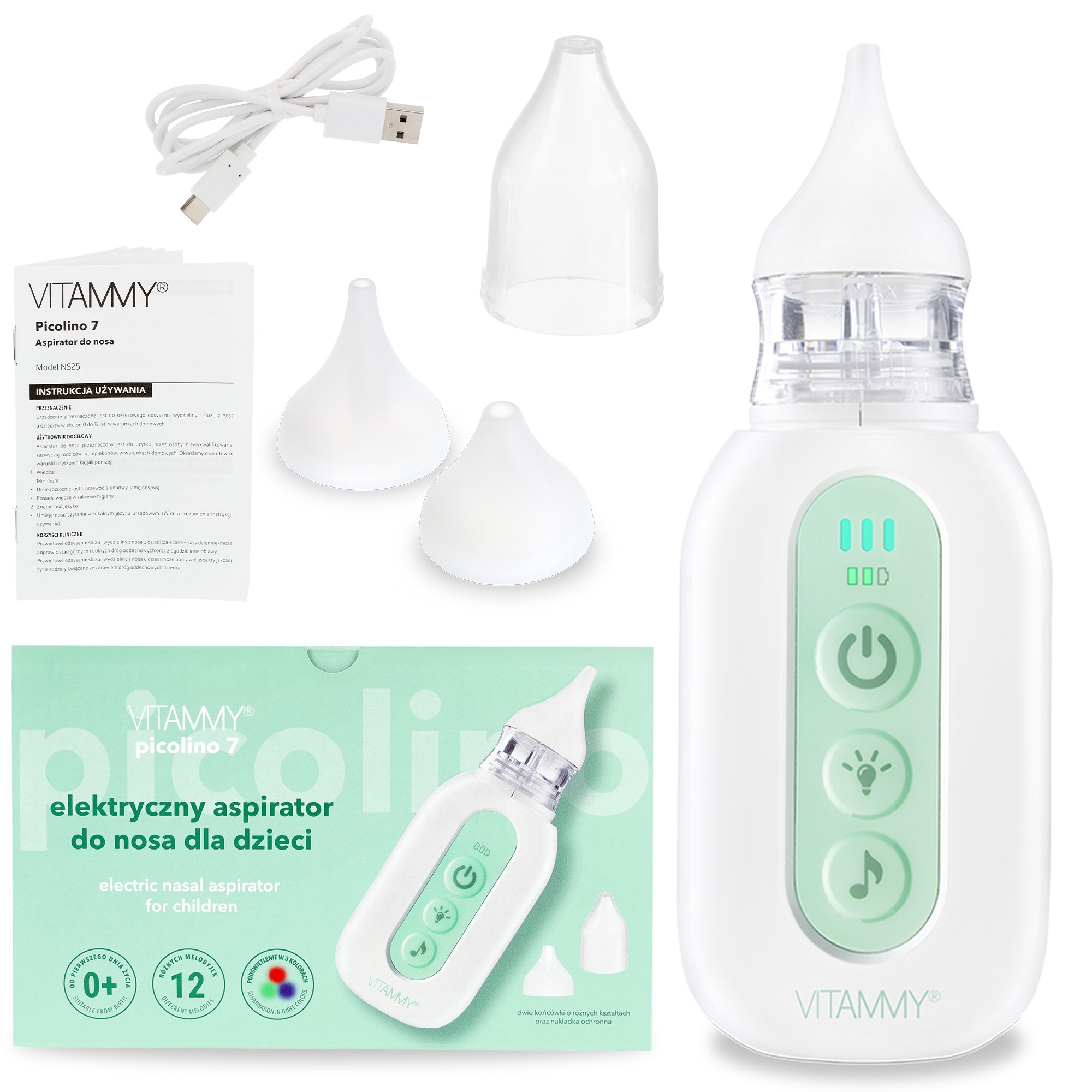 VITAMMY PICOLINO 7 Elektryczny aspirator do nosa dla dzieci, 2 końcówki, 3 tryby
