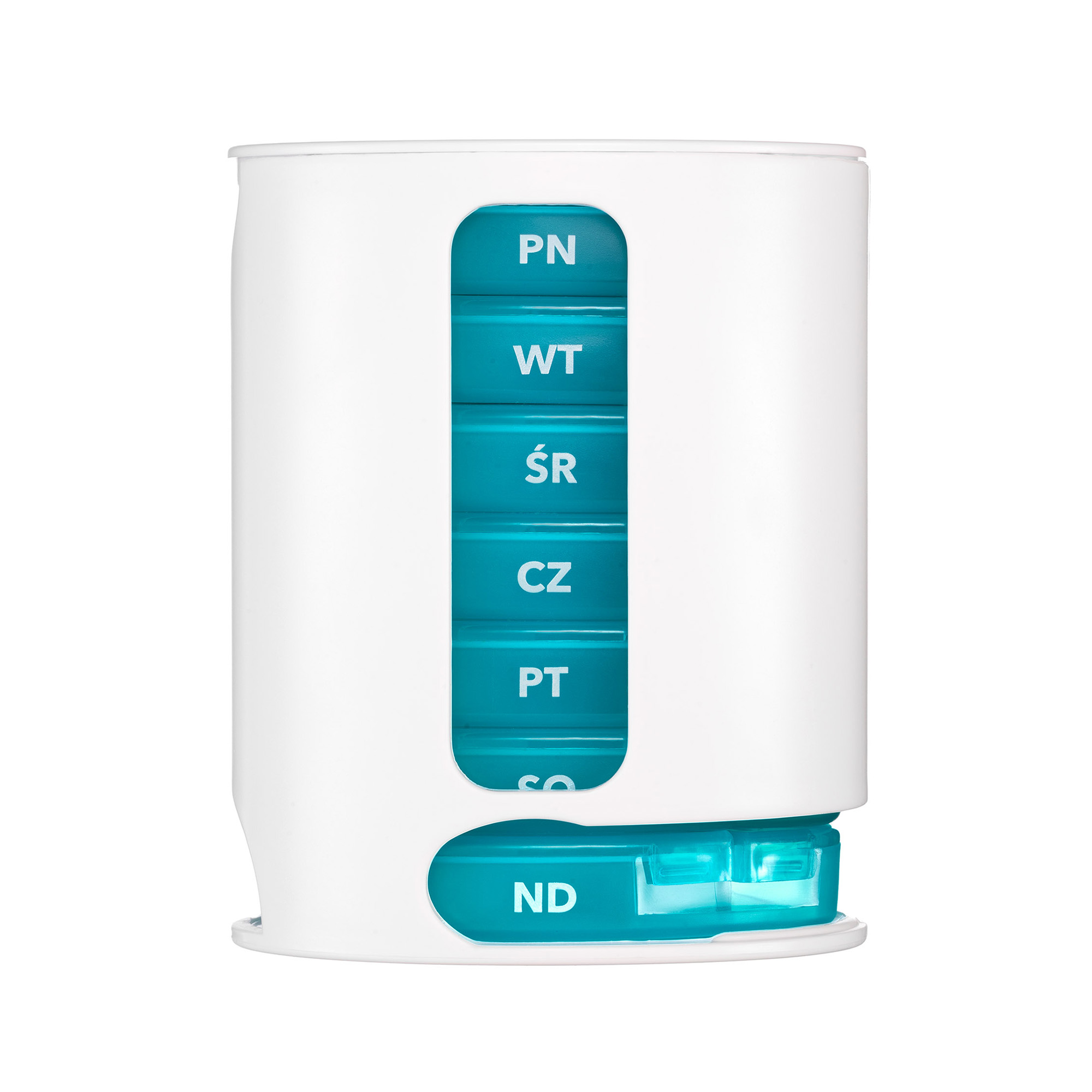 Vitammy Pilla Oval to praktyczny system kasetek na cały tydzień, zamknięty w estetycznym, białym pojemniku. Każda z 7 wysuwanych kasetek odpowiada jednemu dniowi tygodnia i została podzielona na 4 przegródki – rano, południe, wieczór i noc – co ułatwia precyzyjne planowanie przyjmowania leków.