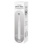 Pura Slim to szczoteczka soniczna proponująca minimalistyczny design w czterech wyrazistych kolorach, uszlachetnionych opalizującym lakierem. Łączy w sobie lekkość manualnej szczoteczki z wydajnością szczoteczki sonicznej. Dzięki ultralekkiej wadze oraz energooszczędnej technologii, oferuje wyjątkową wygodę użytkowania w wersji EKO. Wyposażona jest w specjalny system headclick zapobiegający zanieczyszczeniom. Dwa uniwersalne programy i timer w połączeniu ze specjalnie wyprofilowaną dużą główką wyposażoną w 40 wiązek włókien, pozwolą dobrze umyć zęby. Wytrzymała bateria, zapewnia nawet ponad 45 dni działania po pełnym naładowaniu. Wodoodporność IPX7 zapewnia komfortowe użytkowanie w każdej łazience.