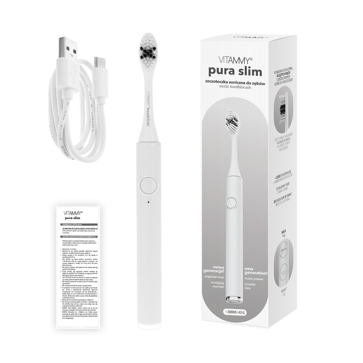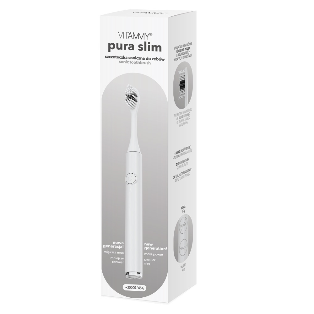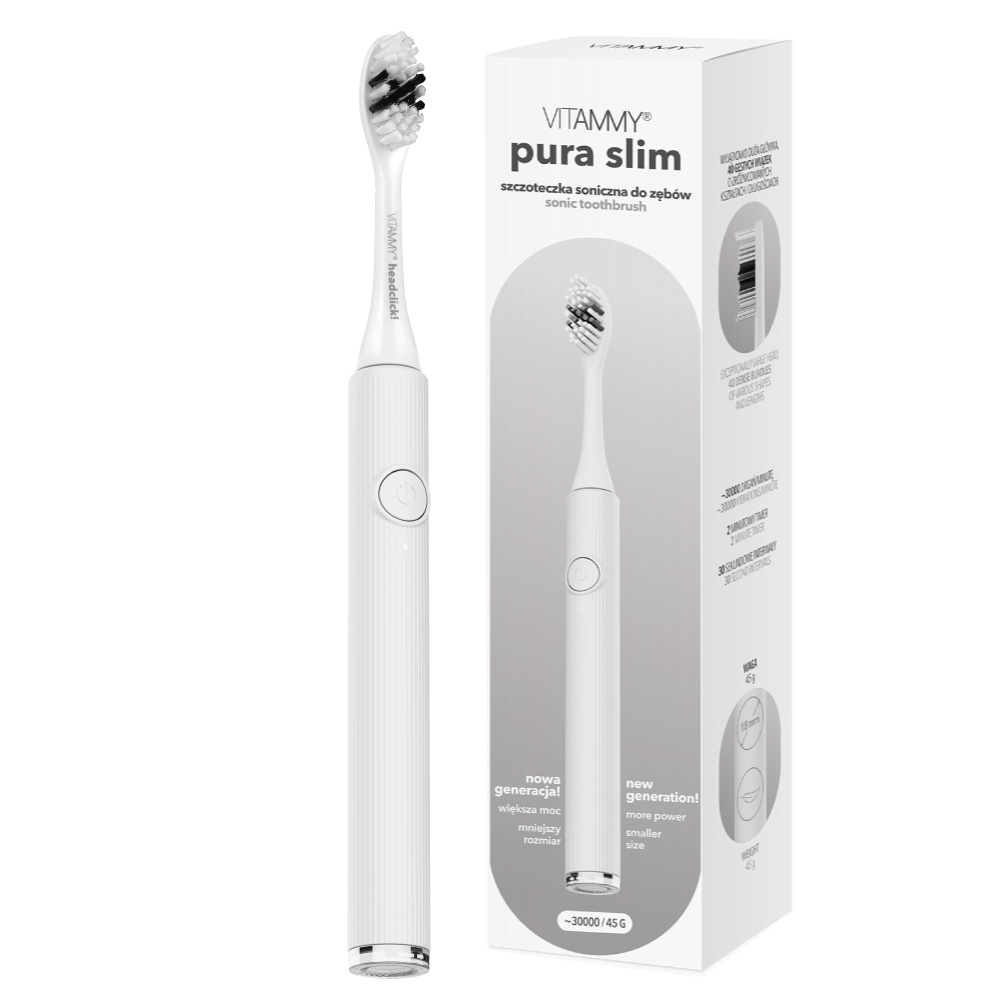 VITAMMY PURA SLIM BIAŁA Szczoteczka soniczna do zębów nowej generacji, ultralekka