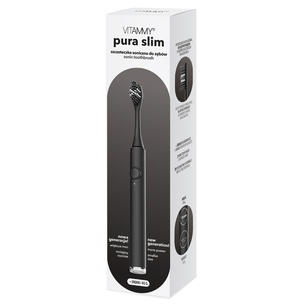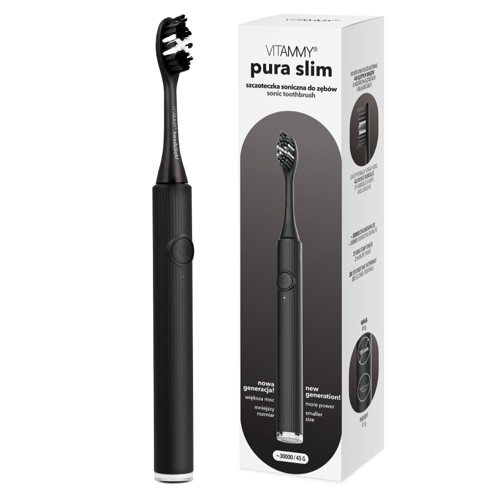 VITAMMY PURA SLIM CZARNA Szczoteczka soniczna do zębów nowej generacji, ultralekka