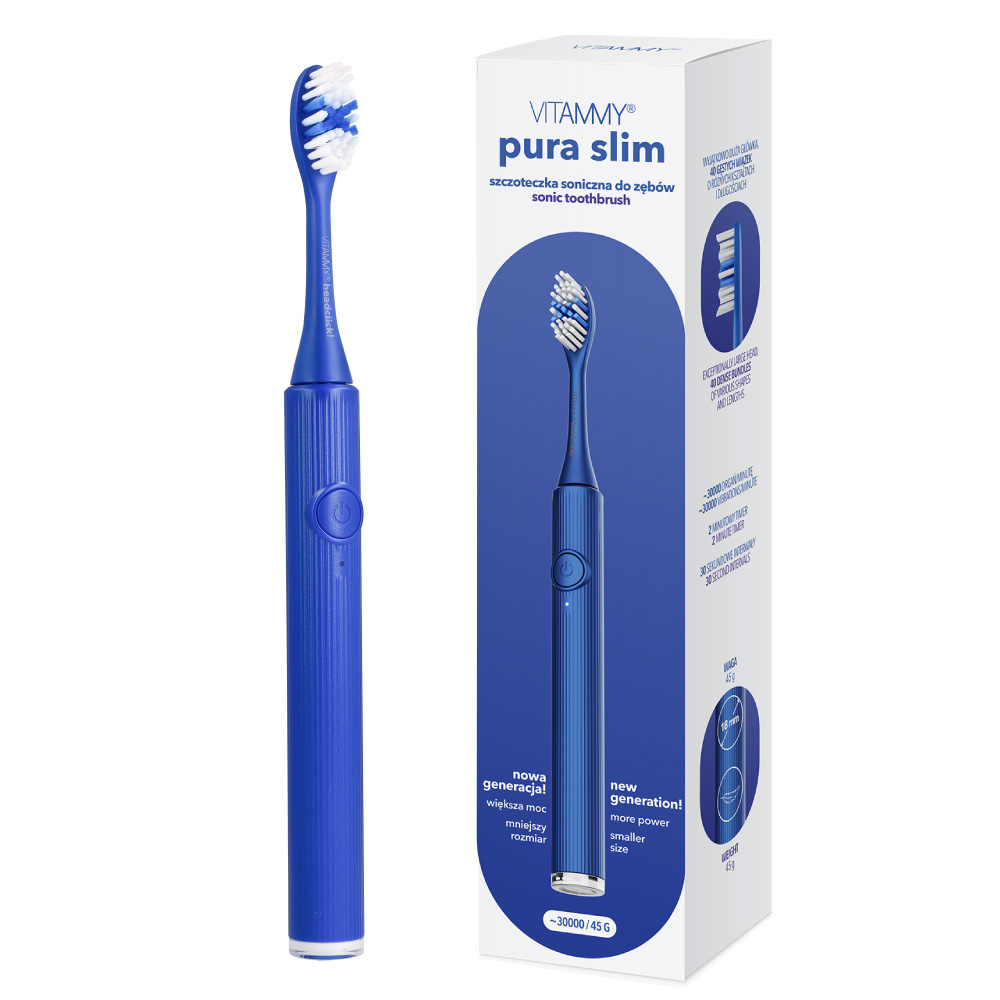 VITAMMY PURA SLIM NIEBIESKA Szczoteczka soniczna do zębów nowej generacji, ultralekka