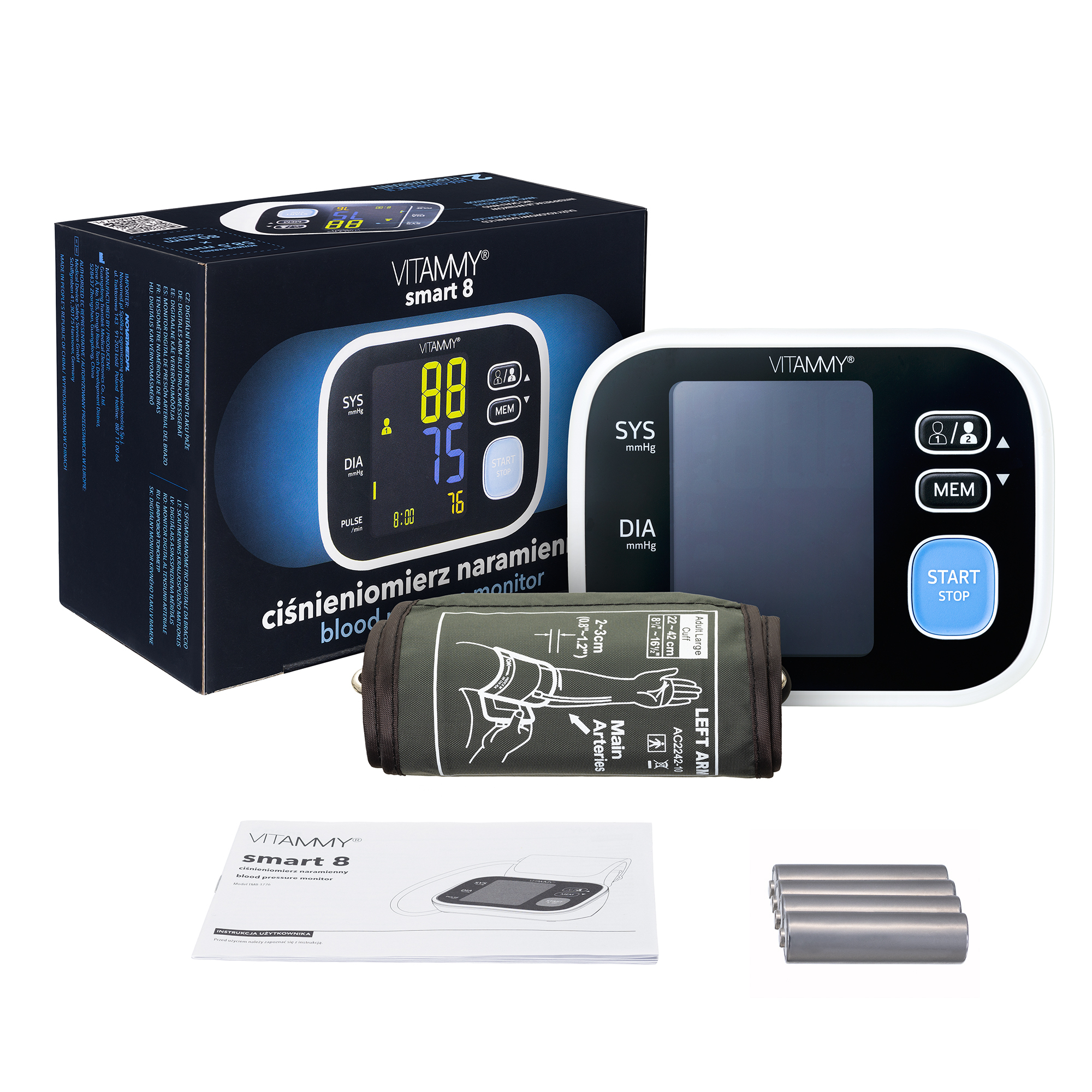 VITAMMY SMART 8 Ciśnieniomierz naramienny, wykrywanie arytmii, pamięć 2×60