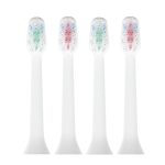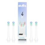 Końcówki do szczoteczki sonicznej Vitammy Smils. W opakowaniu 4 sztuki w jasnych kolorach. Białe końcówki z dwoma kolorami włosia. Stopniowo odbarwiające się włókna główki wskazującymi na stopień zużycia i konieczność zmiany główki.