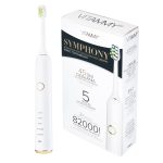 Soniczna szczoteczka do zębów Vitammy Symphony Nowa szczoteczka soniczna o bardzo wysokiej mocy drgań i wyciszonej obudowie. Mycie soniczną szczoteczką jeszcze nigdy nie było tak komfortowe. Naładowana szczoteczka działa 45 dni, to unikatowa bateria pozwalająca na niezależność. Szczoteczkę ładować można przy pomocy dowolnych urządzeń zasilających USB i indukcyjnej ładowarki. 5 trybów szczotkowania i odliczanie 4 stref mycia dopasuje szczoteczkę do twoich wymagań i potrzeb. 45 dni działania na jednym ładowaniu Pojemny akumulator pozwala pracować na jednym ładowaniu aż do 45 dni pracy, przy założeniu mycia zębów 2 razy dziennie. 5 trybów szczotkowania Vitammy Symphony oferuje pięć trybów szczotkowania dla różnych potrzeb higieny jamy ustnej: – Clean – Czyste: czyste zęby każdego dnia,- White – Biały: usuwa przebarwienia powierzchniowe,- Polish – Perfekcyjne polerowanie: do gruntownego czyszczenia,- Massage – Pielęgnacja dziąseł: delikatny masaż dziąseł,- Sensitive – Wrażliwy: delikatne czyszczenie zębów i dziąseł. 82000 ruchów główki na minutę Vitammy Symphony to 2 x bardziej efektywne czyszczenie dzięki zwiększonej ilości ruchów główki. Komfortowa, smukła główka Kształt główki został zaprojektowany by dokładnie i delikatnie myć zęby.