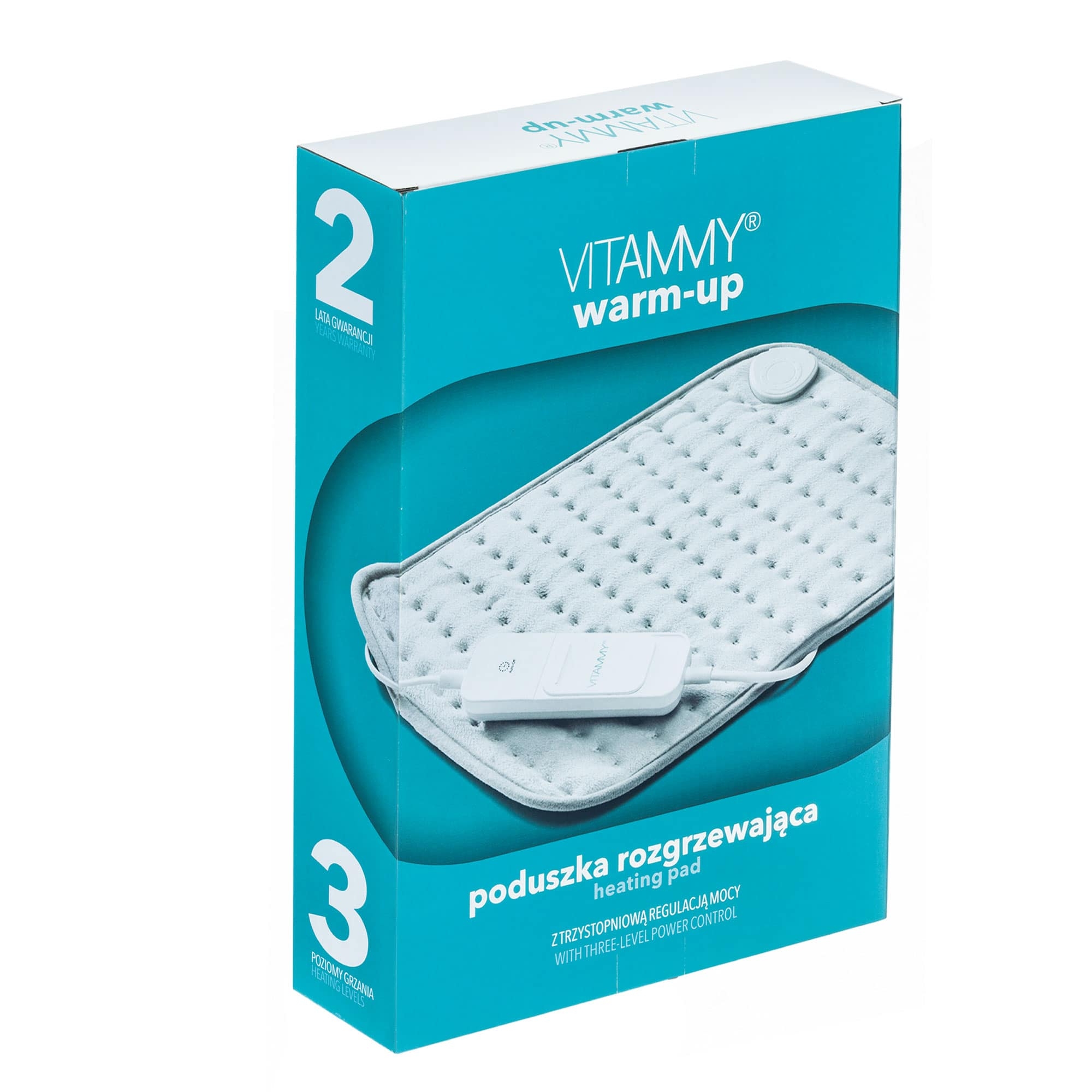 Vitammy Warm-Up: Moc 100 W, Materiał przyjemny w dotyku, Można prać ręcznie, Odłączany przewód z kontrolerem, Automatyczne wyłączanie, Zaawansowany termostat sensorowy, 3 poziomy grzania, Długość przewodu zasilającego 210 cm. 3 poziomy grzania Vitammy Warm-Up Od przyjemnego ciepła do mocniejszego grzania. Poziom 1: 40 stopnie C. Poziom 2: 50 stopnie C. Poziom 3: 60 stopni C. Bezpieczeństwo i komfort Vitammy Warm-Up Po 2 godzinach poduszka wyłącza się automatycznie. Vitammy Warm-Up posiada zabezpieczenie przed przegrzaniem. Posiada certyfikaty i atesty: CE/ GS/ EMC/ CB/ ROHS. Vitammy Warm-Up z nowoczesnym kontrolerem Bezpieczny kontroler z wyświetlaczem. Nowoczesny wygląd i najnowsze rozwiązania techniczne. Wygodny w użytkowaniu, łatwy w obsłudze pilot poduszki. Inteligentne grzanie Vitammy Warm-Up to oszczędność energii Nowa technologia zastosowana w poduszce Vitammy Warm-Up zapewnia równomierną dystrybucję ciepła w całej poduszce. Jej prostokątny kształt łatwo dopasowuje się do wszystkich części ciała. Vitammy Warm-Up ma moc 100W i optymalizuje ilość zużytej energii dzięki zaawansowanemu termostatowi sensorowemu. Vitammy Warm-Up z nowoczesnym kontrolerem Bezpieczny kontroler z wyświetlaczem. Nowoczesny wygląd i najnowsze rozwiązania techniczne. Wygodny w użytkowaniu, łatwy w obsłudze pilot poduszki. Poduszka Vitammy Warm-Up dla romantycznych i praktycznych Jeśli lubisz otulające ciepło i potrzebujesz go w zimowe wieczory ta poduszka jest stworzona dla Ciebie. Poduszka Vitammy Warm-Up wykonana jest z miękkiej, zmywalnej tkaniny. Design poduszki jest uniwersalny dla osób w każdym wieku. Materiał jest łatwy w utrzymaniu czystości i miękki jak plusz. Praktyczne osoby poduszka zaskoczy możliwością prania ręcznego całej poduszki (po odłączeniu przewodu). Długość przewodu zasilającego 210 cm.