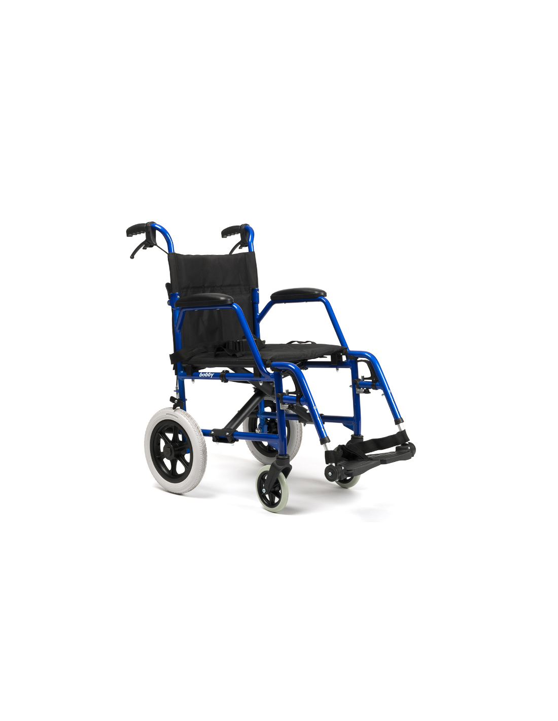 Bobby to wózek kompaktowy, podróżny. Lekki i łatwy w składaniu. Doskonały do używania w szpitalach, na lotnisku, do transportu z punktu A do punktu B. Idealny do przetrzymywania w bardzo małych pomieszczeniach i wymagający minimum konserwacji.