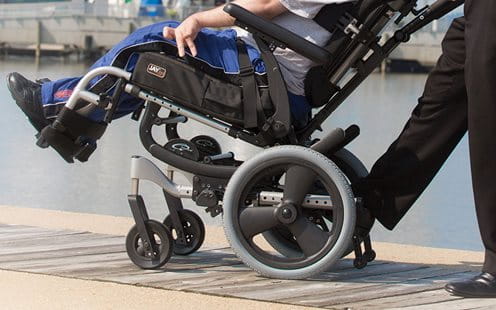 System IRIS jest dostępny z szeroką gamą opcji ułatwiających wykonywanie codziennych czynności związanych z opieką nad dzieckiem. Aby przechylać siedzisko bez odsłoniętych kabli, wybierz siłownik przechyłu zwalniany stopą. Hamulce zintegrowane z piastą umieszczone na tylnych drążkach są kompaktowe, łatwo dostępne i łatwe w obsłudze dla każdego opiekuna. W standardzie z oparciem z regulacją wysokości, rączka wózka z regulacją kąta ma 260° regulacji kąta, aby dopasować się do różnych wzrostów opiekunów i umożliwić pchanie z pozycji pochylonej.